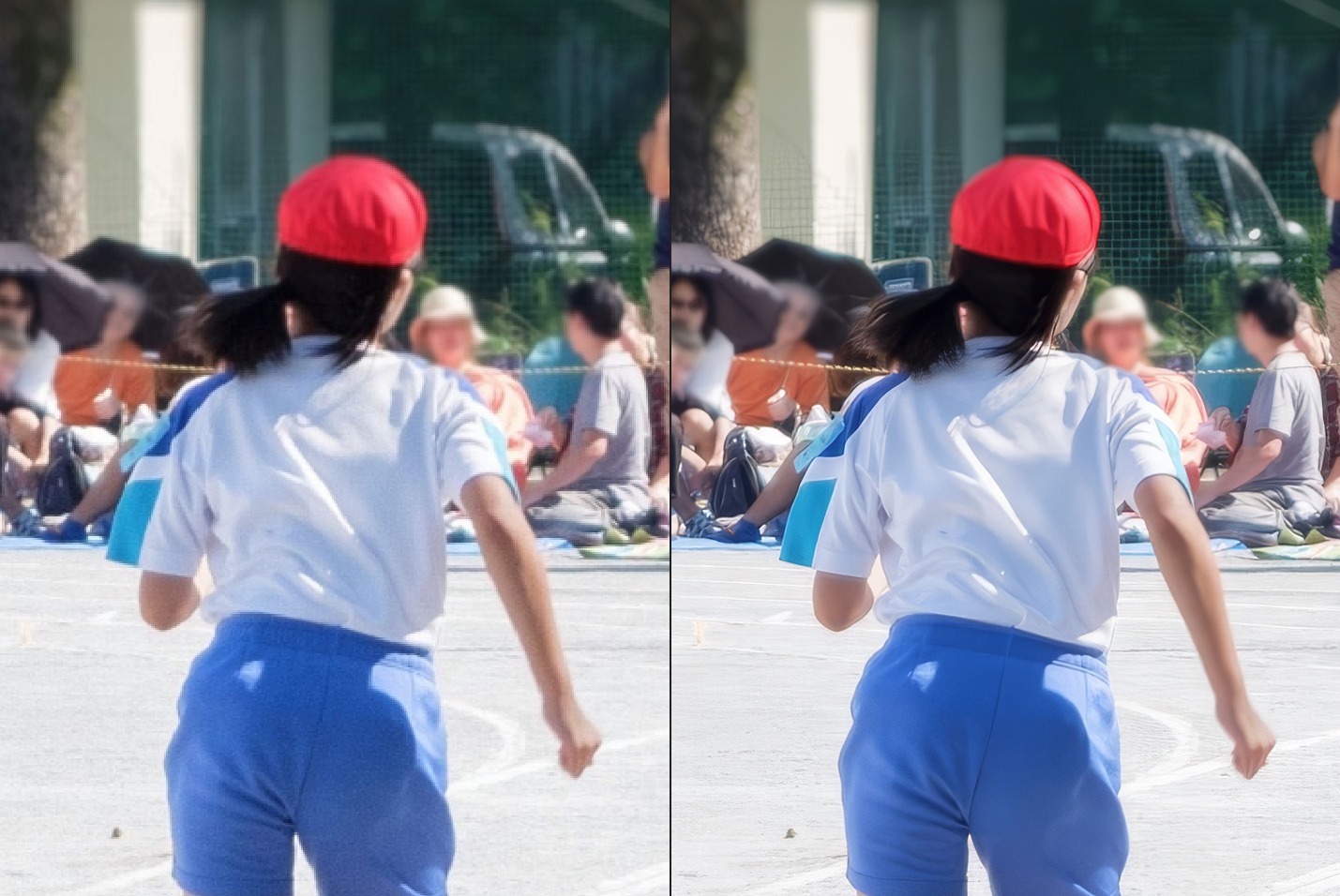 2. ピントの甘さを「シャープ」に 「ちょっとブレちゃったかな?」という写真でも、AIが被写体を解析し、ピントが合っているかのようにクッキリと補正します。
